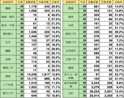 平成30年度と平成29年度の合格率を対比してみた 技術士ニュース
