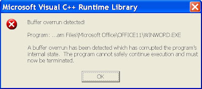 Yaron Maor ירון מאור Fix Error Buffer Overrun Detected On Winword Exe In Office 2003
